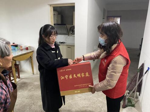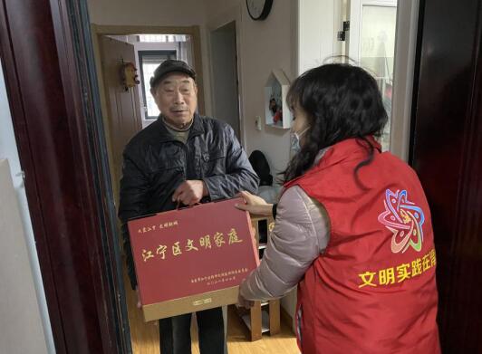 新春將近,年味漸濃,近日,南京市江寧區(qū)淳化街道新華社區(qū)開展以“揚(yáng)正氣 樹新風(fēng)”為主題的活動(dòng),新時(shí)代文明實(shí)踐志愿者為三戶家庭上門發(fā)放“文明家庭”的獎(jiǎng)牌。