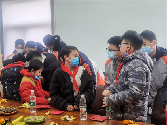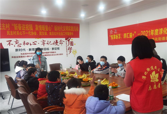 “爆竹聲聲辭舊歲,紅梅點點迎新春”。活動現(xiàn)場,工作人員通過茶話會座談的方式,讓來自南京外國語學校初一四班的7名學生和民主部分困境兒童進行結對。