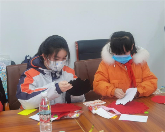 隨后,民主村志愿者還邀請各位孩子們一起結對制作虎年DIY掛件,在志愿者的指導下,耐心細致地進行制作,彼此相互幫助,共同完成了屬于自己的新年掛件,新年氣氛滿滿,孩子們的臉上洋溢著幸福的笑容。
