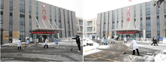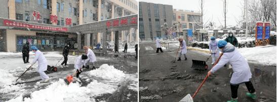 雪情就是命令,支部黨員志愿者們不畏嚴(yán)寒,對(duì)醫(yī)院院區(qū)及社區(qū)街道路上的積雪和結(jié)冰進(jìn)行清除,齊心協(xié)力,配合默契,鏟的鏟、推的推、掃的掃,干得熱火朝天,忙碌的身影構(gòu)成了冬日里一道亮麗的風(fēng)景線。雖然戶外溫度已到-3℃,但大家勞動(dòng)的熱情和團(tuán)結(jié)的力量讓這個(gè)冬日變得格外溫暖。