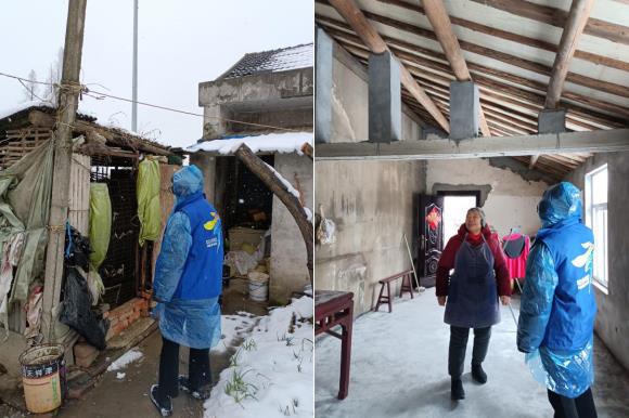 河南社區(qū)005網(wǎng)格員鄭冉來到村民張順珍老人家中,老人獨(dú)自居住,網(wǎng)格員認(rèn)真查看房屋漏水情況,及危房隱患的排查,并且了解其生活狀況,提醒她雪天路滑,盡量不要外出,有事情聯(lián)系社區(qū),一定要注意安全。隨后網(wǎng)格員對(duì)轄區(qū)內(nèi)的重點(diǎn)危舊房屋展開深入細(xì)致的現(xiàn)場(chǎng)排查,逐一向居住危舊房的村民宣傳雨雪天氣安全防范工作,提醒村民注意防范降雪可能造成的危害,宣傳安全用電取暖知識(shí)、群眾出行等系列安全知識(shí),如有危險(xiǎn)因及時(shí)離開房屋內(nèi)保障生命安全,增強(qiáng)村民的自我保護(hù)意識(shí)。