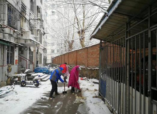 天氣雖然寒冷,大伙兒卻分工明確,干勁十足。大家拿起掃帚、鐵鍬,掃的掃、鏟的鏟,雖然雪水濕透了鞋子,但熱情和干勁絲毫不減。大家從小區(qū)主干道、小街巷開始清掃,大家一邊掃著雪,一邊提醒著過路的行人:“雪天慢行,注意腳下安全。”許多居民看到工作人員掃雪,連忙趕回家拿掃帚,加入了志愿掃雪的隊(duì)伍。共同為周邊居民雪天安全出行保駕護(hù)航。雖然雪水浸濕鞋襪,泥水打濕、弄臟衣服,然而這一切絲毫沒有影響大家高漲的掃雪熱情。在大家共同努力下,不一會(huì)兒就為居民清理出了一條條“安全路”,使小區(qū)內(nèi)外道路暢通無阻。