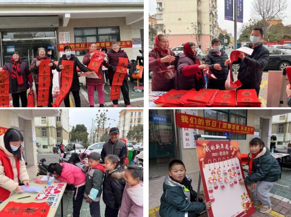 活動(dòng)現(xiàn)場(chǎng),社區(qū)志愿者們免費(fèi)為轄區(qū)居民現(xiàn)場(chǎng)發(fā)放春聯(lián)、福字和窗花,為居民送上真摯的新春祝福。一幅幅寫滿祝福的春聯(lián)躍然紙上,既喜慶又充滿福氣。大家拿著一幅幅紅紅火火的春聯(lián)和福字,高興不已,紛紛表示感謝。有的小朋友略顯害羞,社區(qū)志愿者就積極鼓勵(lì)小朋友不要害怕,勇敢地參與進(jìn)來(lái)。最后,小朋友寫下自己對(duì)新年的祝福,從志愿者手里接過(guò)對(duì)聯(lián),高興地向家長(zhǎng)跑去,臉上洋溢著幸福的笑容。太平社區(qū)把對(duì)聯(lián)、福字和窗花,作為新年禮物送給轄區(qū)內(nèi)的居民、高齡老人、環(huán)衛(wèi)工人等特殊群體,為他們送去節(jié)日的祝福。同時(shí)也弘揚(yáng)、傳播了中華優(yōu)秀傳統(tǒng)文化。在送春聯(lián)、福字的同時(shí),太平社區(qū)志愿者們還向居民介紹了“貼春聯(lián)”、“掃塵”、“除夕”等春節(jié)有關(guān)知識(shí)。