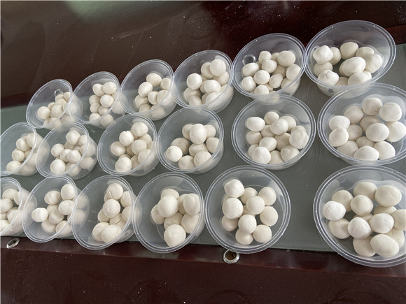 活動現(xiàn)場,工作人員將提前準(zhǔn)備好的食材端上桌,大家有說有笑開始包湯圓,揉面的揉面,搓、捏、按、團,一塊塊白白的糯米面在大家手中團成一個球……一會功夫,一個個白胖的湯圓擺在了大家的面前。