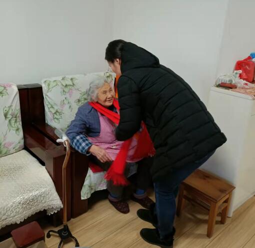 在南京市棲霞區(qū)堯化街道堯化新村102號(hào)小區(qū)陳婆婆家里,因?yàn)樯鐓^(qū)工作人員的到來(lái)而熱鬧溫馨。陳婆婆對(duì)社工已經(jīng)相當(dāng)熟悉,因?yàn)槊吭露加猩绻ぜ爸驹刚邅?lái)看望,并幫助免費(fèi)量血壓,提供健康咨詢。