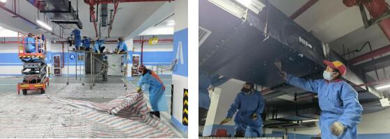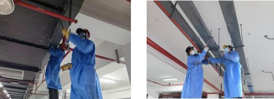 石埠橋村社區(qū)開展車庫排風(fēng)管道除銹防腐