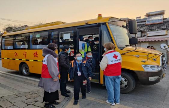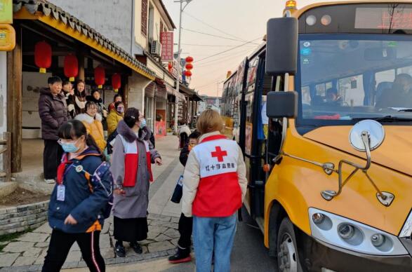 校車安全是全社會較為關注的問題,為了確保學生安全乘車,2月24日,南京市江寧區(qū)東山街道佘村社區(qū)紅十字會開展護送學生放學志愿服務。