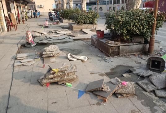 在日常巡查過程中,江南廠社區(qū)城市治理委員發(fā)現(xiàn)由于年久失修,轄區(qū)內(nèi)商業(yè)街門店前的地磚破損嚴(yán)重,雨天過后很多污水淤積在地磚縫隙里,居民走過很容易就濺到一身污水。不僅如此,破損地磚的碎片極易被帶出坑位,鋒利的地磚一旦出現(xiàn)在路面上就很容易給行人造成傷害。