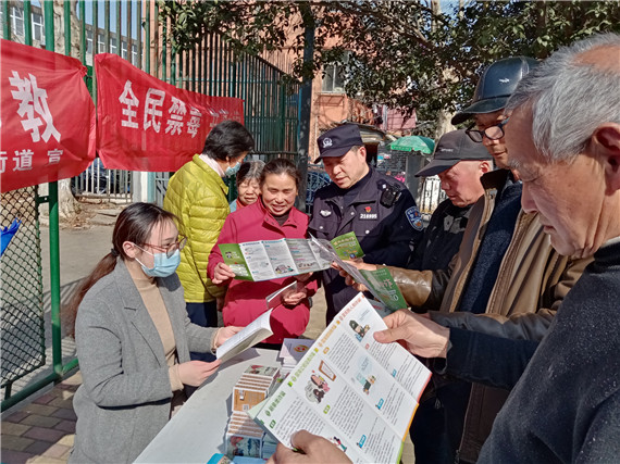 活動(dòng)現(xiàn)場(chǎng),張律師就高空拋物、財(cái)產(chǎn)糾紛、房屋漏水賠償?shù)葹榍皝?lái)咨詢的居民一一解答。堯化派出所政法網(wǎng)格員趙警官,向在場(chǎng)的居民發(fā)放防詐宣傳冊(cè)并告知居民謹(jǐn)防上當(dāng)受騙。網(wǎng)格長(zhǎng)、志愿者們則向居民現(xiàn)場(chǎng)講解禁毒、反邪、防詐等相關(guān)知識(shí)并發(fā)放法制宣傳冊(cè)及環(huán)保宣傳袋,以此提高居民群眾的防范意識(shí)、法制意識(shí)。