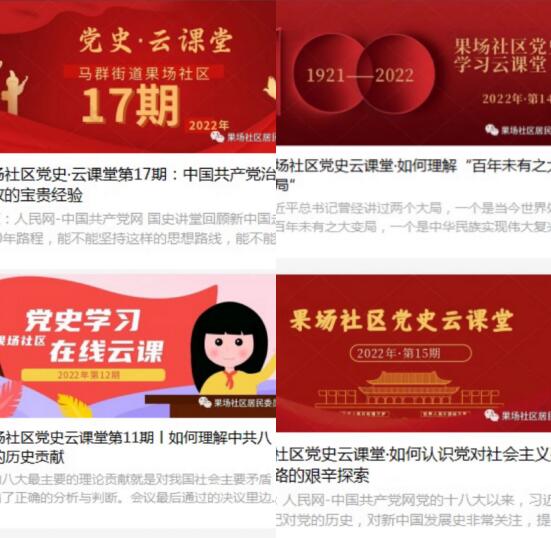 自新冠肺炎疫情以來(lái),為減少聚集,果場(chǎng)社區(qū)便開(kāi)始創(chuàng)新送學(xué)形式,開(kāi)啟在線“云”課堂。每月由社區(qū)專職工作人員在公眾號(hào)更新1-2期課堂內(nèi)容,并通過(guò)“掌上云社區(qū)”推送至社區(qū)黨總支及各網(wǎng)格群內(nèi),極大方便了社區(qū)中青年黨員及會(huì)智能手機(jī)操作的老黨員們的日常學(xué)習(xí)。