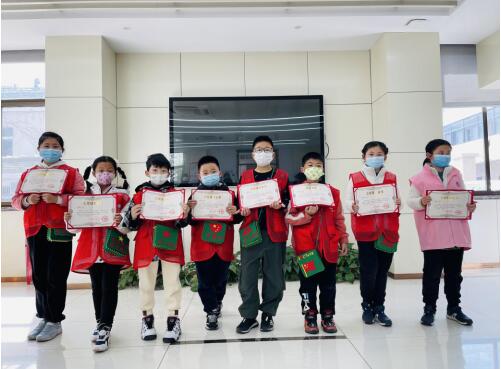 給小小志愿者們頒發(fā)新時(shí)代小雷鋒志愿者證書。