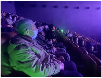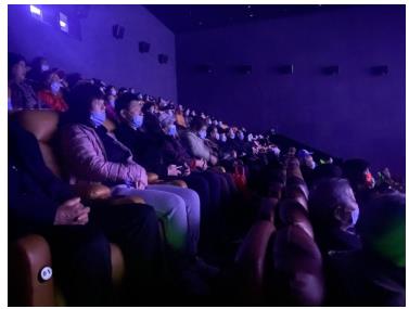 為了貼合疫情防控需求,影院全面消毒,并對(duì)前來觀影的黨員同志做好量體溫,查驗(yàn)蘇康碼等“規(guī)定動(dòng)作”,確保觀影安全?!堕L津湖之水門橋》圍繞著“水門橋”的特定空間,講述了第七穿插連戰(zhàn)士“三炸水門橋”的故事,劇情緊湊,引人入勝。黨員同志們聚精會(huì)神地觀看著電影,當(dāng)看到戰(zhàn)爭結(jié)束之后,部隊(duì)清點(diǎn)人數(shù)的時(shí)候,伍萬里報(bào)道:七連應(yīng)到157人,實(shí)到1人時(shí),很多黨員同志們都眼含熱淚。觀影過程中,黨員同志時(shí)不時(shí)地拿手機(jī)拍攝下影片的精彩片段,還有些同志用紙筆記錄下影片中的歷史知識(shí)。