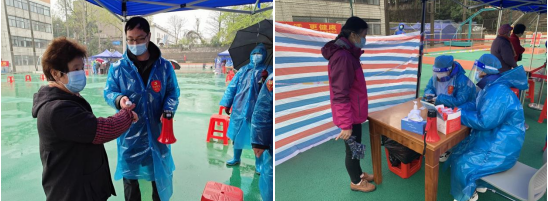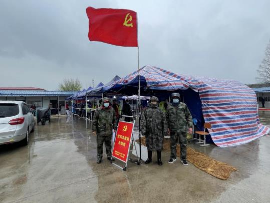 在江南廠社區(qū),新時(shí)代文明實(shí)踐志愿者們和退休老黨員、退役軍人組成的志愿隊(duì)伍一起,支起了一架架帳篷,拉起了一條條警戒線,并在地上鋪好防滑墊,用小喇叭一遍遍喊著“請(qǐng)大家保持好一米安全距離,準(zhǔn)備好核酸檢測(cè)身份碼”,不厭其煩地回應(yīng)著群眾的問題。周爺爺笑著說:“我雖然已經(jīng)退休了,但是還是一名光榮的黨員,應(yīng)該在這種特殊的時(shí)候站出來,站在一線,貢獻(xiàn)力量。”