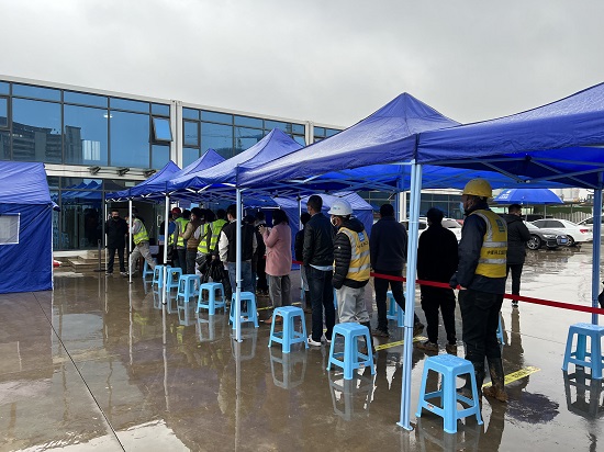 “這么快就可以了嗎”在紅楓片區(qū)保障房工地進(jìn)行全員核酸檢測(cè)的建筑工人都有這樣的感受。3月21日,為做好棲霞街道第二輪全員核酸檢測(cè),南京市棲霞街道紅梅社區(qū)黨總支將“抗疫先鋒”行動(dòng)支部設(shè)立在紅楓保障房建筑工地上,通過設(shè)置黨員先鋒崗、黨員責(zé)任區(qū),20余名黨員亮身份、當(dāng)先鋒、做表率,充分發(fā)揮基層黨組織戰(zhàn)斗堡壘作用和黨員先鋒模范作用,以嚴(yán)實(shí)標(biāo)準(zhǔn)筑牢全員核酸檢測(cè)的“紅色堡壘”。