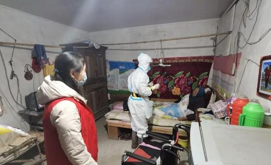 簡(jiǎn)單的午飯過后,李凌霞帶著醫(yī)護(hù)人員和志愿者們走村入戶,為出行困難的群眾進(jìn)行核酸采樣服務(wù),并叮囑他們居家生活不可松懈疫情防控,也需做好防控工作。針對(duì)勇躍村4戶居家隔離群眾,李凌霞和志愿者們每隔一天就會(huì)上門慰問,隔著窗戶送去肉、蔬菜、水果等物資,確保他們有新鮮的食材,都能吃上熱乎飯。