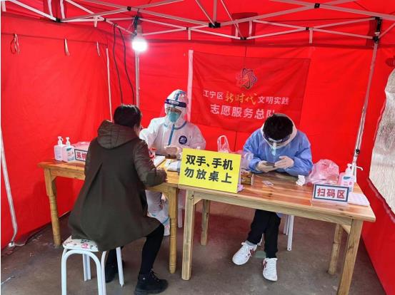 “請(qǐng)大家出示健康碼,抬手測(cè)溫。”“請(qǐng)保持一米距離,二十人一組,有序排隊(duì)。”……他們擔(dān)起核酸檢測(cè)引導(dǎo)員的職責(zé),維持場(chǎng)外的排隊(duì)秩序,講解核酸檢測(cè)注意事項(xiàng),盡心盡力引導(dǎo)前來(lái)參加核酸檢測(cè)的群眾,幫助核酸檢測(cè)工作順利開(kāi)展。