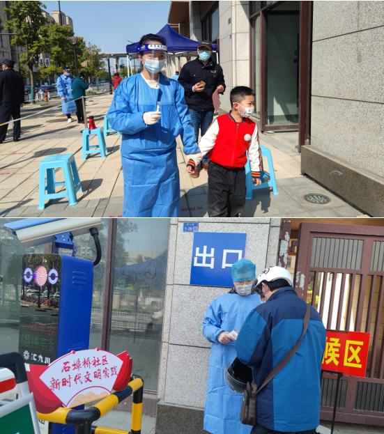 4月2日,石埠橋村社區(qū)開展新一輪核酸檢測,志愿者們在核酸檢測現(xiàn)場積極維護現(xiàn)場秩序、協(xié)助錄入人員信息、上門幫助特殊困難行動不便居民快速檢測。從早上8到準(zhǔn)備到晚上8點結(jié)束,核酸采樣現(xiàn)場,志愿者們忙碌的身影就像一個“陀螺”,不知疲倦地旋轉(zhuǎn)堅守在崗位上,不怕苦不怕累。志愿者們認(rèn)真負(fù)責(zé)的態(tài)度、耐心溫和的行動給了轄區(qū)居民堅定生活的希望與信心。