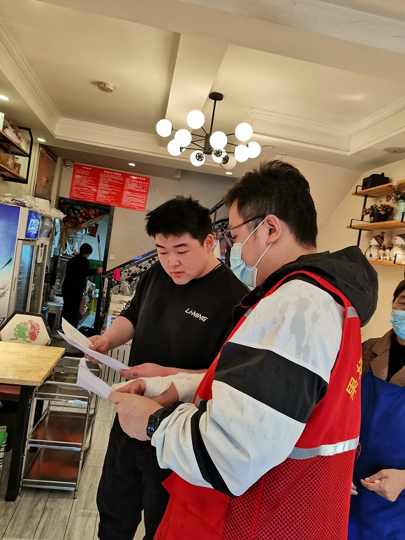 疫情防控常態(tài)化以來,轄區(qū)餐飲行業(yè)稍有復(fù)蘇,巡查工作人員督促店主一定要繃緊心弦,嚴格落實防疫要求,定期組織店內(nèi)人員進行核酸檢測,并考慮到有些店內(nèi)有新招的員工,店主要負起責任,積極配合社區(qū)環(huán)保關(guān)于餐飲行業(yè)從業(yè)人員的油煙污染防治的宣傳和學(xué)習(xí)工作。