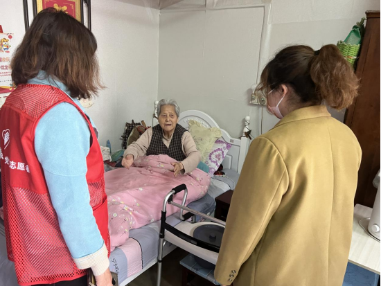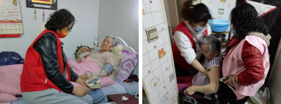 接到求助電話后,陸芳立即安排了兩名樓棟長上門為老人擦洗身體,第二天一大早又和眾善居家養(yǎng)老工作人員、志愿者來到老人家中了解具體情況。戴蓉琦的丈夫希望安排志愿者給老人洗個熱水澡,居家養(yǎng)老工作人員第一時間對浴室環(huán)境和老人的身體狀況進(jìn)行了評估,制定了簡單的方案。4月15日中午,居家養(yǎng)老工作人員對老人進(jìn)行助浴前身體檢測,讓家屬簽字同意后,隨即開展了助浴服務(wù)。床位轉(zhuǎn)移、洗澡、指甲修剪、吹發(fā)……一系列服務(wù)結(jié)束后,工作人員打電話告知戴蓉琦,社區(qū)殘協(xié)已經(jīng)安排好一切,給老人洗了澡,助浴后身體檢測狀態(tài)良好,讓她放心治療,不要擔(dān)心。
