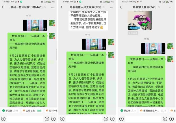 “書籍是人類知識和文化的載體,是人類智慧的結(jié)晶,讀書是人們獲取知識和信息的重要手段,是人類吸取精神能量的重要途徑……”在微信群中,社區(qū)工作人員發(fā)布了小視頻,用這種特殊的方式,介紹了世界讀書日的設(shè)立宗旨、發(fā)展歷史、意義等,倡導(dǎo)更多的居民多讀書、讀好書,讓閱讀成為日常生活中的一個部分。居民們表示,疫情阻止了大家“行萬里路”的腳步,但是我們依然可以通過“讀萬卷書”來增長見識,拓寬視野,感悟不同的人生。