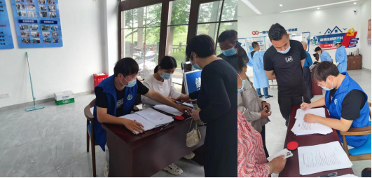 在接種現(xiàn)場(chǎng),志愿者排好桌椅、拉好電源線,張貼好指引標(biāo)示,為村民填寫(xiě)接種信息,在現(xiàn)場(chǎng)積極做好各項(xiàng)從旁協(xié)助任務(wù)。在抗擊疫情的過(guò)程中,志愿者不可或缺,是除了政府救助之外民間互助的重要力量,志愿者們默默無(wú)聞,充當(dāng)橋梁,既為村民提供了方便,也讓醫(yī)務(wù)人員能夠心無(wú)旁騖,專(zhuān)心投入工作。