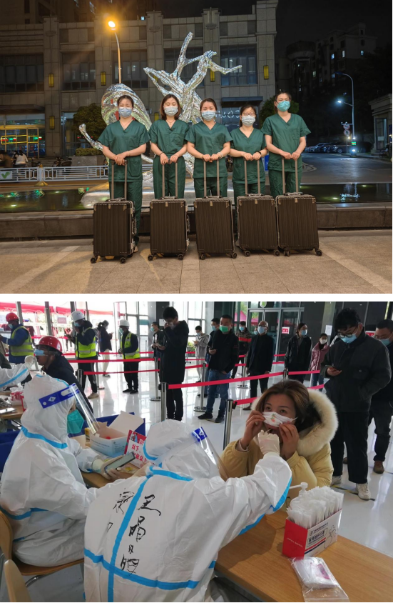 主動(dòng)請(qǐng)纓一線,嚴(yán)守疫情防控。3月12日至4月10日,祿口社區(qū)醫(yī)院康復(fù)科護(hù)士長(zhǎng)方富靜主動(dòng)參加?xùn)|山街道封控區(qū)支援;4月23日至今,她第二次出征全區(qū)核酸采樣。長(zhǎng)時(shí)間地工作,帶給她的不僅是身體上的疲憊,還有身處高風(fēng)險(xiǎn)封控區(qū)內(nèi)產(chǎn)生的心理緊張情緒。按照防疫相關(guān)規(guī)定,封控區(qū)內(nèi)實(shí)行區(qū)域封閉、足不出戶(hù)、服務(wù)上門(mén)的管控措施,封控區(qū)內(nèi)居民需定期進(jìn)行核酸檢測(cè)。方富靜和同事們的重要任務(wù)之一,就是為封控區(qū)居家隔離的市民進(jìn)行入戶(hù)核酸檢測(cè)。每天一早,全體隊(duì)員撲到一線,穿上防護(hù)服,拿上名單和檢測(cè)材料,走進(jìn)居民樓一戶(hù)戶(hù)篩查,每人每天檢測(cè)上百人。早出晚歸,披星戴月,就是她們最真實(shí)的寫(xiě)照。在這期間,有好幾次突發(fā)情況需要去別的街道支援,盡管身體已經(jīng)疲憊不堪,但大家都是二話不說(shuō)立即前往,常常忙碌到凌晨?jī)扇c(diǎn)。有些隊(duì)員甚至在天色將明時(shí)才完成任務(wù)返回駐地。方富靜說(shuō),“回想起來(lái),都不知道自己那段時(shí)間是如何挺過(guò)來(lái)的。”第一次支援結(jié)束后,方富靜回到家中與孩子短暫相聚,次日又立馬投入到醫(yī)院的工作中去。4月23日她再次接到防疫任務(wù),帶領(lǐng)隊(duì)伍支援江寧區(qū)各街道的全民核酸。兒子在接到她又要出去工作的消息,很是不舍:“媽媽你怎么才回來(lái)又要出去了?”她向兒子解釋到,“這是媽媽的工作呀,等我回來(lái)帶你去吃好吃的!”安慰好孩子以后,她便毫不猶豫地投入到工作中去。