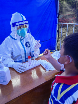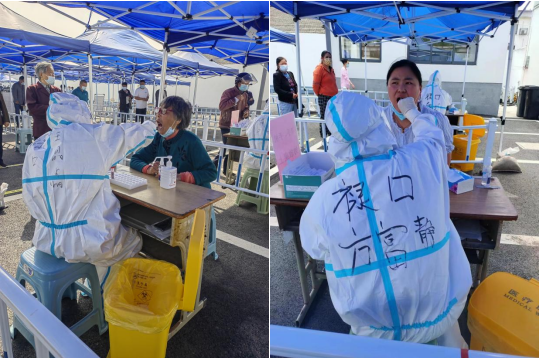 彰顯醫(yī)者本色,筑牢防控屏障。晨光熹微,幾個(gè)女孩已經(jīng)開(kāi)始了一天的工作,驅(qū)車(chē)1個(gè)多小時(shí),在7點(diǎn)30之前到達(dá)各個(gè)點(diǎn)位,為居民進(jìn)行核酸檢測(cè)。除了吃飯、去洗手間,幾名女孩從未離開(kāi)過(guò)核酸檢測(cè)點(diǎn)位,一天下來(lái),檢測(cè)人數(shù)超過(guò)1000人。白天悶熱、夜晚寒冷,祿口社區(qū)醫(yī)院的姑娘們要克服的不僅是生理上的壓力,更有精神上的壓力。穿脫防護(hù)服要嚴(yán)格遵循防疫規(guī)定、核酸檢測(cè)要全神貫注、常常冷掉的午餐……高強(qiáng)度的工作和精神的高度緊繃常常讓她們累到虛脫。但是,即使面對(duì)繁瑣的工作步驟和繁忙的工作任務(wù),祿口社區(qū)醫(yī)院的姑娘們?nèi)匀挥脠?jiān)持的意志漸漸克服種種困難,也逐漸找到了更合適的工作節(jié)奏,做好了打持久戰(zhàn)的準(zhǔn)備。