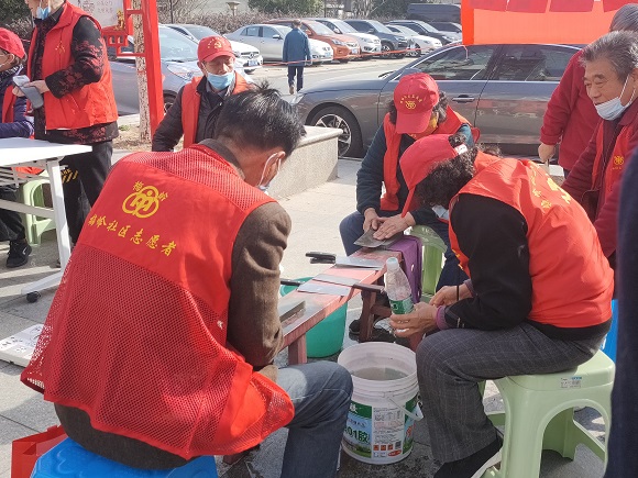 居民黨員志愿者朱先貴帶領(lǐng)著3名有著理發(fā)專長的鄰居,為前來現(xiàn)場的老人們理發(fā),忙活了一上午大家連口水都沒有來得及喝,服務(wù)了近50多名居民;居民王師傅看到磨刀區(qū)域的服務(wù)特別火熱,臨時申請加入志愿服務(wù)隊伍,為大家做好后勤服務(wù)工作;由于社區(qū)老年居民居多,健康義診區(qū)域的量血壓、測血糖等服務(wù),也備受大家的歡迎。