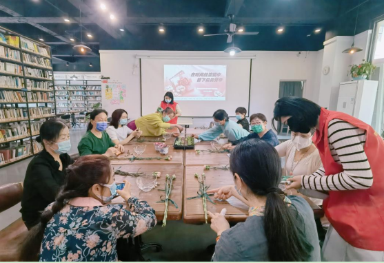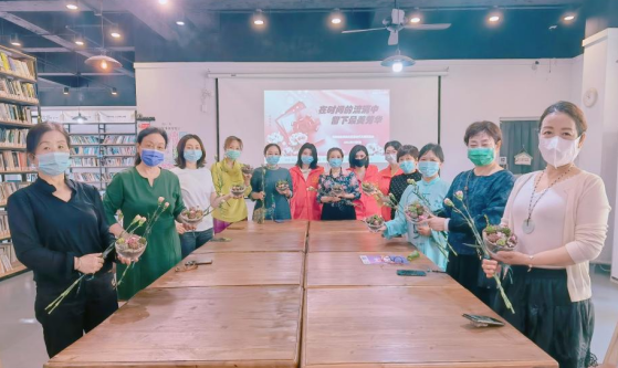 活動(dòng)現(xiàn)場(chǎng),社區(qū)工作人員為前來(lái)參與活動(dòng)的“媽媽”們準(zhǔn)備了多肉植物和康乃馨,工作人員依次為志愿者“媽媽”送上康乃馨,“祝你們母親節(jié)快樂(lè),感謝你們一直以來(lái)支持社區(qū)工作以及疫情期間默默無(wú)私付出。”志愿者“媽媽”們開心地接過(guò)康乃馨,并在工作人員的陪同下制作出屬于自己的多肉植物景觀。