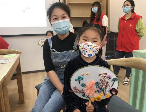 送上花朵,似乎是表達(dá)愛意的常用方式?;顒?dòng)中,小朋友們在志愿者的指導(dǎo)下親手制作團(tuán)扇,纖小的雙手小心翼翼地對干花花朵進(jìn)行搭配,做成一枝枝花束,再裝飾在團(tuán)扇上,既美觀又實(shí)用,每一束花都凝結(jié)著孩子對于母親最真摯的感恩與祝福!