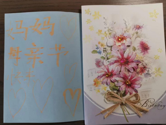 隨后,志愿者們?yōu)楹⒆悠占傲四赣H節(jié)的由來和意義,小朋友們還制作了卡片。孩子們對賀卡進(jìn)行創(chuàng)意加工,并寫下溫馨的祝福,將平時(shí)難宣于口的愛意傳遞給自己的母親,雖只有片語只言,卻滿載著深深情誼。收到禮物后,母親們與孩子熱情擁抱,滿心感慨和欣慰。