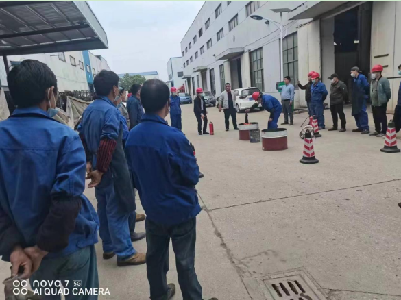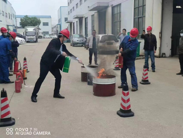 為了讓大家更好地掌握消防安全知識,社區(qū)工作人員組織企業(yè)員工開展了一場消防演練,指導他們在火災發(fā)生時應該如何正確逃生,并教導大家根據所學的知識實際操作滅火器,將火盆里的火源熄滅。