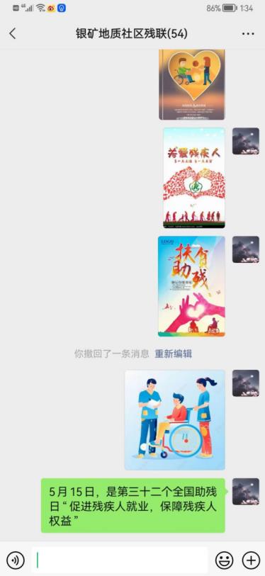 殘聯(lián)工作人員在微信群中發(fā)送了宣傳海報(bào),介紹全國(guó)助殘日的設(shè)立目標(biāo)和意義,并具體講解了政府促進(jìn)殘疾人就業(yè)的相關(guān)政策,鼓勵(lì)大家參與到殘疾人就業(yè)指導(dǎo)、殘疾人專場(chǎng)招聘會(huì)等活動(dòng)中來(lái),提升自己的職業(yè)水平,拓寬就業(yè)渠道。除此之外,殘聯(lián)工作人員還介紹了殘疾人“兩項(xiàng)補(bǔ)貼”可以全程網(wǎng)上辦理,為大家提供便利服務(wù),讓“數(shù)據(jù)多跑腿,群眾少跑路”。殘疾人朋友們表達(dá)了對(duì)社區(qū)和殘聯(lián)的感謝,表示,將會(huì)進(jìn)一步學(xué)習(xí)相關(guān)政策措施,也將會(huì)積極參與殘疾就業(yè)培訓(xùn),讓自己的生活過(guò)得更好。