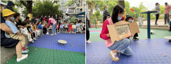 活動(dòng)現(xiàn)場(chǎng),陳曦老師拿出《小蟲(chóng)子球球》的立體讀本,聲情并茂地向小朋友們講述著小蟲(chóng)子球球的冒險(xiǎn)之旅,“看,這次小蟲(chóng)子球球遇到了什么危險(xiǎn)呢?”在陳曦老師的帶動(dòng)下,小朋友們漸漸沉浸到故事當(dāng)中,積極與老師互動(dòng),幫助小蟲(chóng)子球球度過(guò)一次又一次危險(xiǎn)。故事結(jié)束后,小朋友們還在熱烈地討論著,“小蟲(chóng)子球球好勇敢呀!”“我也要像小蟲(chóng)子球球那樣幫助別人。”