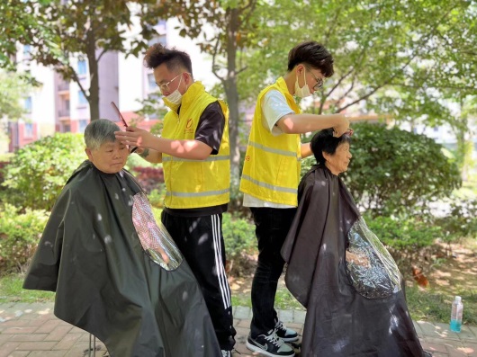 一大早,在小區(qū)廣場內(nèi)時(shí)間銀行志愿者們就已經(jīng)準(zhǔn)備好了各項(xiàng)器材、設(shè)備。志愿者分成兩只小隊(duì),一隊(duì)為老人們挑選涼爽的樹蔭下,開展免費(fèi)理發(fā)服務(wù)活動(dòng),前來理發(fā)的老人絡(luò)繹不絕,老人們對(duì)志愿者服務(wù)質(zhì)量也是贊不絕口,臉上洋溢著幸福笑容。一隊(duì)則是為老人們測(cè)量血壓、血糖、心率等,解答相關(guān)的健康咨詢問題,并且給予老人們生活上的建議,引導(dǎo)他們養(yǎng)成健康的生活習(xí)慣。