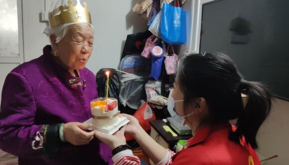 在做好疫情防護(hù)的前提下,志愿者們上門為老人們送上精心準(zhǔn)備的生日蛋糕,陪伴老人點(diǎn)燃蠟燭,許下生日的祝福,向長者們傳遞關(guān)愛。長者生日會不但豐富了老年人的精神文化生活,也弘揚(yáng)了中華民族的傳統(tǒng)美德,形成愛老敬老孝老的社會氛圍。