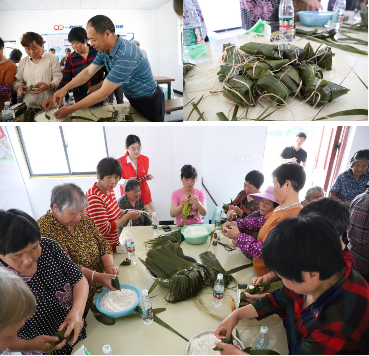 緊張有趣的游戲做完之后,志愿者和居民一起包粽子,大家圍在桌案面前,拿起事先準(zhǔn)備好的粽葉和糯米,你一言我一語(yǔ),暢聊游戲過程中的趣事,交談參加活動(dòng)的真實(shí)感受,完全沒了開始時(shí)的拘束之態(tài)。人多力量大,經(jīng)過大家的努力,不多時(shí)就包好了許多粽子。
