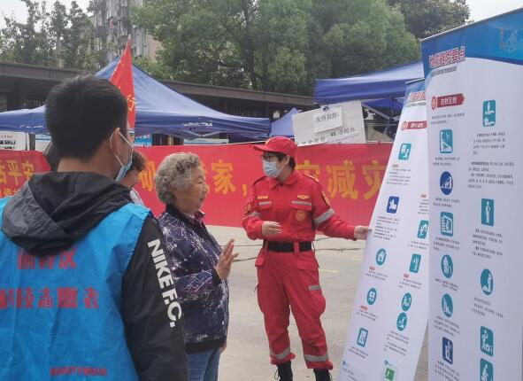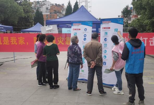 社區(qū)工作人員制作了各類災(zāi)害的知識展板,向居民分類介紹并講解相關(guān)要點(diǎn)以及正確處理方法。如遇到地震、臺風(fēng)、洪水等災(zāi)害時,如何防范和進(jìn)行自救,并結(jié)合接下來的夏季汛期來科普防洪防汛技巧,“當(dāng)可能受到洪水威脅時,不要沿著洪道方向跑,應(yīng)該有組織地向山頂或者高地等高處轉(zhuǎn)移。”“不要輕易游泳,以防被洪水沖走……”