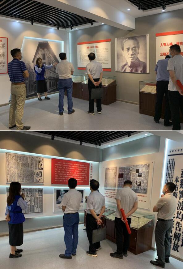 “史量才歷史文化展示館為4個(gè)展廳,以《申報(bào)》為主要載體,借助圖片、文獻(xiàn)、實(shí)物等方式,全面再現(xiàn)史量才報(bào)業(yè)救國(guó)的人生軌跡。”網(wǎng)格員李冬雪一邊帶領(lǐng)黨員們依次參觀(guān),一邊為大家詳細(xì)講解。江蘇省漁業(yè)技術(shù)推廣中心委員會(huì)黨員們沉浸式感受到報(bào)業(yè)大王史量才勇于揭露黑暗、抨擊時(shí)弊的強(qiáng)烈民族情感和愛(ài)國(guó)精神,以及為捍衛(wèi)言論自由所表現(xiàn)出的大義凜然,英勇無(wú)畏。最后,大家深沉回望抗日戰(zhàn)爭(zhēng)時(shí)期艱苦卓絕、赴湯蹈火的戰(zhàn)斗歲月,深切感悟先輩們忠貞報(bào)國(guó)的家國(guó)情懷,深情緬懷英烈不畏艱險(xiǎn)、不怕?tīng)奚某绺呔瘛?/p>