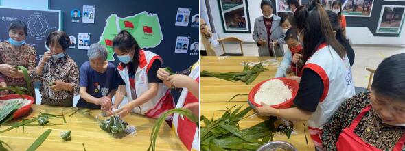 活動開始前,志愿者為前來參加活動的老人準備了泡好的糯米和粽葉,還為每一位老人送上了端午的祝福。折粽葉、裝糯米、系繩結,老人們十分投入,活動現場歡聲笑語不斷、一片熱鬧祥和的氛圍。包粽子的同時,志愿者還與老人們聊聊家常,關心著老人們的生活,仔細聆聽著老人們對老年活動開展情況的反饋。現場村民李奶奶表示,“自己已經連續(xù)幾年參與包粽子活動了,每一年都很收到很多粽子,和老朋友們在聊天的時候就把粽子包完了。”