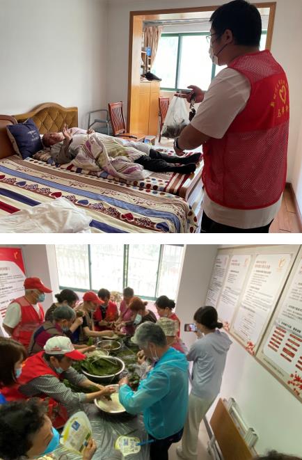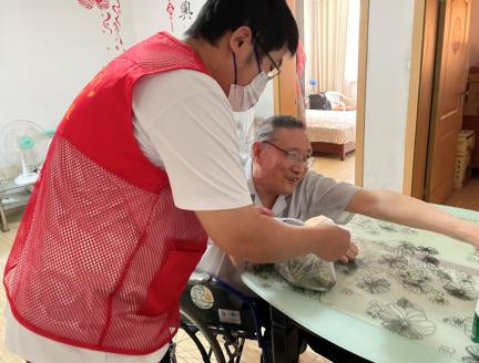 在百水家園社區(qū)養(yǎng)老服務(wù)站里,志愿者門為殘疾人朋友量血壓,和他們一起包粽子、做香袋。志愿者還為行動(dòng)不便的殘疾人送去自己報(bào)的粽子,并送上節(jié)日問候和祝福。
