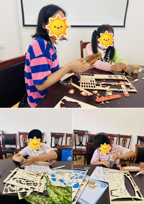 賽龍舟是端午節(jié)的傳統(tǒng)習俗之一,雖然由于地域和專業(yè)技能的限制,孩子們沒有太多的機會參與到賽龍舟的競技中,但是借助親手制造龍舟的方式,同樣可以表達去災求吉的美好愿望。鑒于本次的閱讀主題與船有關聯(lián),因此社區(qū)精心設置了制作木質龍舟的環(huán)節(jié)。在現(xiàn)場志愿者的帶領下孩子們開始了動手嘗試,親手制作的龍舟模型令孩子們體會到滿滿的成就感。