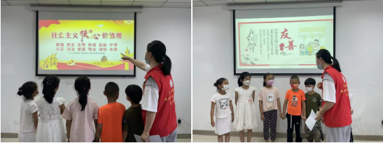 活動現(xiàn)場,志愿者為小朋友們進行社會主義價值觀教育,著重像小朋友們介紹了友善這一概念。“友善,是社會的潤滑劑,能夠讓人與人之間的關(guān)系和睦,減少很多摩擦和不必要的麻煩,有助于社會團結(jié),有助于社會進步。”在志愿者的講解下,小朋友們紛紛表示要將“友善”融入生活的方方面面。