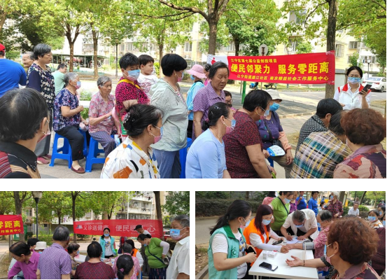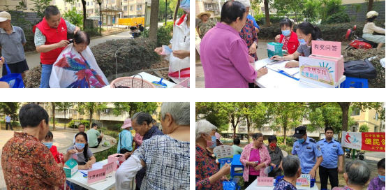 上午8點(diǎn)30分,金桂園小區(qū)內(nèi)各個(gè)展位布置完成,主持人宣布活動(dòng)正式開始,并介紹了活動(dòng)流程及各個(gè)活動(dòng)區(qū)的功能,鼓勵(lì)居民們根據(jù)自己的情況選擇不同的服務(wù)。熱鬧非凡的廣場(chǎng)上,有的居民選擇了義剪區(qū)域,由理發(fā)師為他們?cè)O(shè)計(jì)、修剪一個(gè)清爽的新發(fā)型,迎接炎熱的夏天;有的居民前往義診區(qū)域,由醫(yī)護(hù)人員為他們測(cè)量血壓、血糖,也會(huì)收到一些健康建議;還有的居民來到反電信詐騙宣傳區(qū),學(xué)習(xí)一些防范養(yǎng)老詐騙、電信詐騙的知識(shí),參與有獎(jiǎng)問答。為了在居民之間傳遞“奉獻(xiàn)、友愛、互助、進(jìn)步”的志愿者精神,現(xiàn)場(chǎng)還進(jìn)行了志愿者的招募,鼓勵(lì)居民踴躍報(bào)名。