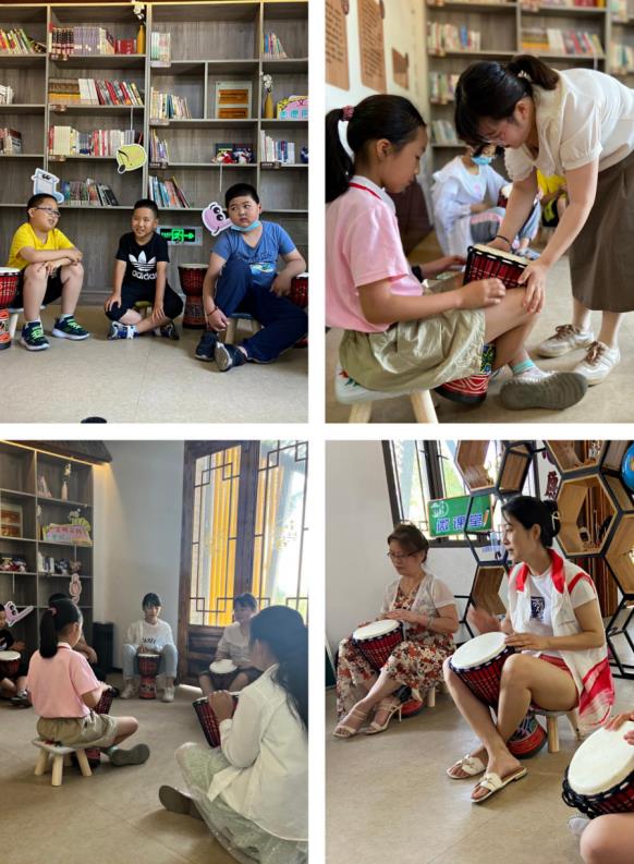 活動(dòng)中,秦老師用簡(jiǎn)潔、生動(dòng)的語言向青少年們介紹非洲鼓的起源、特點(diǎn)還有樂理知識(shí),并開展打節(jié)奏、練耳等活動(dòng),“咚咚噠,咚咚噠,咚噠咚咚噠...”從擊打聲中感受非洲鼓低音的深沉,中音的厚實(shí),高音的清脆及不同節(jié)奏帶來的聽覺盛宴。