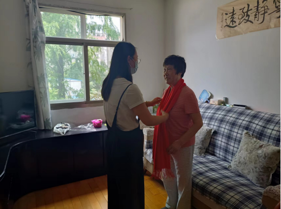 大家齊唱生日快樂歌,為郭奶奶佩戴紅圍巾,聽著聲聲祝福的話語,郭奶奶樂得合不攏嘴。志愿者還為老人測量血壓,工作人員幫助其打掃家中衛(wèi)生。現(xiàn)場,郭奶奶也向我們分享著屬于他的幸福與快樂:“我的一生的幸福都是共產(chǎn)黨和國家給我的,給了我一個好時代,讓我可以擁有如此快樂的晚年生活。”