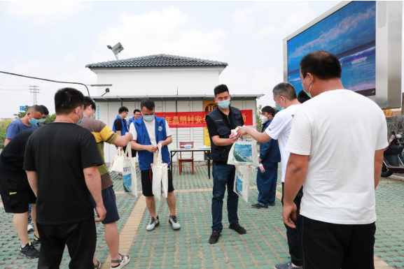 在轄區(qū)廣場,晶明村安全員及網(wǎng)格員集中向過往群眾及企業(yè)職工發(fā)放環(huán)保袋、扇子、安全宣傳讀物、安全知識手冊、安全常識海報等宣傳物品和資料,耐心詳細(xì)地為群眾普及地震應(yīng)急疏散、燃?xì)獍踩?、交通安全、防汛減災(zāi)、森林防火等安全知識,普及基本的消防安全知識,使廣大村民群眾了解和掌握了防火、滅火及逃生自救技能,引導(dǎo)村民群眾增強(qiáng)安全意識,形成保障安全的強(qiáng)大合力。