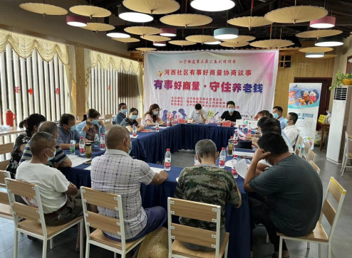 社區(qū)代表、鶴顏養(yǎng)老組織代表、社區(qū)民警或律師、對口政協(xié)委員、群眾代表等共同參與此次會議。會議由主持人引出議題,再由社區(qū)工作人員分享河西村養(yǎng)老服務(wù)工作,陳述目前養(yǎng)老工作的進(jìn)展和成果。群眾代表則按照一事一議,圍繞“有事好商量·守住養(yǎng)老錢”的會議主題,就如何防止老年居民上當(dāng)受騙發(fā)表意見和看法,提出針對性強、可操作性強的措施,致力于保障居民財產(chǎn)安全,讓老年居民度過一個有質(zhì)量晚年生活。