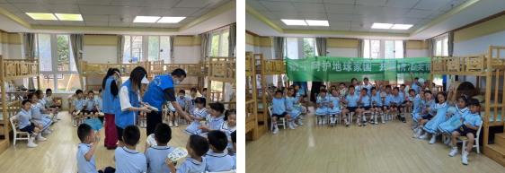 為了培養(yǎng)孩子們從小樹立保護環(huán)境的意識,6月23日,金陵驛社區(qū)未成年人保護站走進馬群幼兒園東花港分園,開展以“攜手呵護地球家園 共建清潔美麗世界”主題環(huán)保宣傳教育活動。