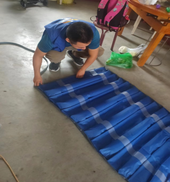 患者家屬之前便跟社區(qū)反映,自己女兒長年臥床不起,需要一個(gè)洗澡椅和床墊。了解到殘疾患者的情況后,網(wǎng)格員便積極與街道殘聯(lián)申請輔助用具,東西領(lǐng)回來后,網(wǎng)格員不畏炎炎夏日,將洗澡椅和床墊親自送到患者家中,為其免費(fèi)安裝,希望可以解決患者的生活難題。在患者家中,網(wǎng)格員拆開包裝,耐心地講解著具體的使用方法,并叮囑她安心生活,有任何麻煩事都可以找網(wǎng)格員解決。